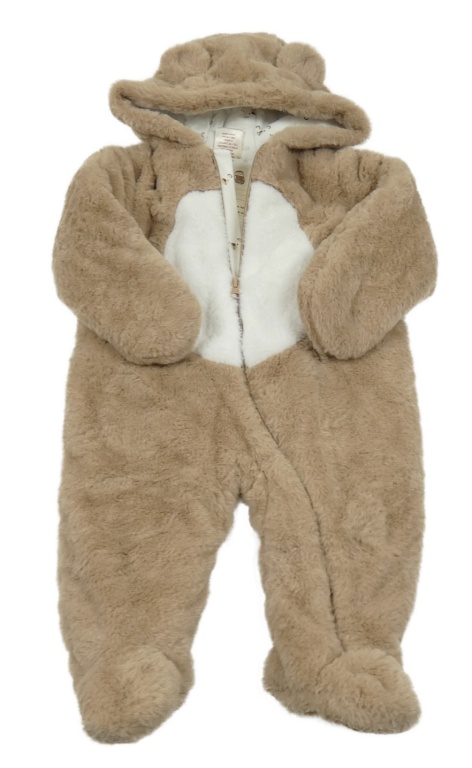 • Hnědo-bílá kožešinová zateplená kombinéza s kapucí s oušky