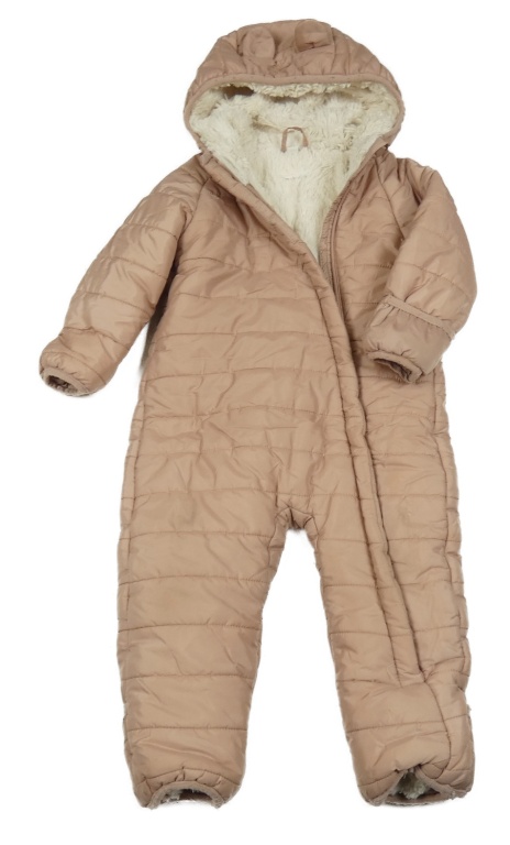 Pudrová šusťáková prošívaná zimní kombinéza s kapucí