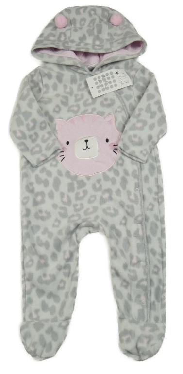 • Nové - Šedo-světlerůžová vzorovaná fleecová kombinéza s kočkou a kapucí Watch me grow