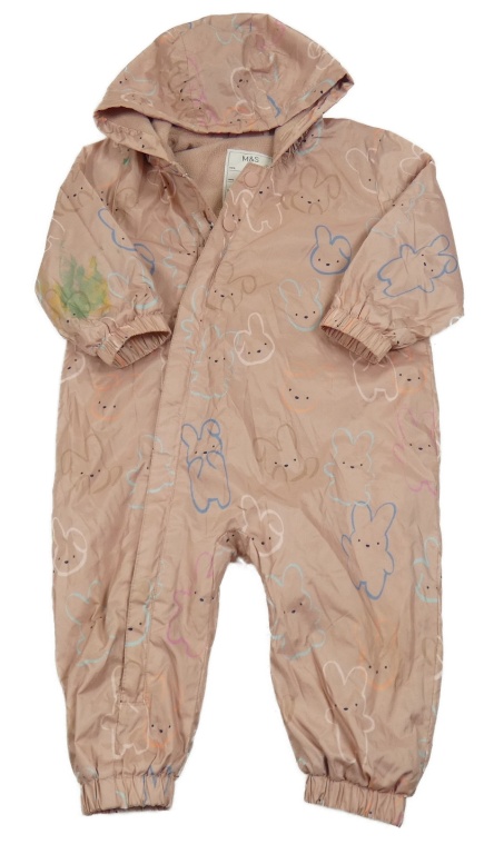 Světlerůžová šusťáková jarní kombinéza se zajíčky a kapucí M&S