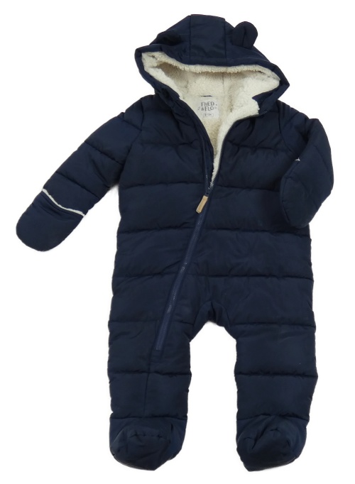 Tmavomodrá prošívaná šusťáková zimní kombinéza s kapucí s oušky F&F