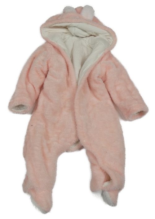 Světlerůžová chlupatá podšitá kombinéza s kapucí