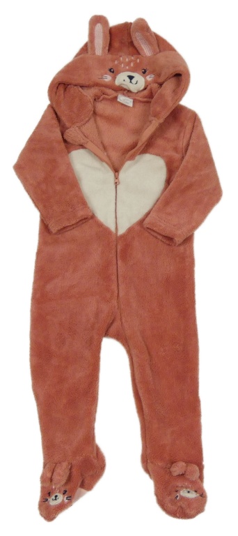 Růžovo-bílá chlupatá kombinéza s kapucí - zajíc Orsolino