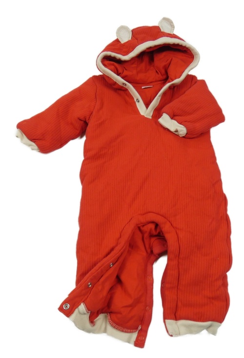 • Červená žebrovaná bavlněná zateplená kombinéza s kapucí