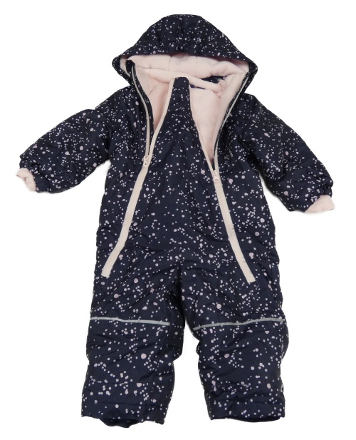 Tmavomodro-růžová puntíkatá šusťáková zimní kombinéza s kapucí Lupilu
