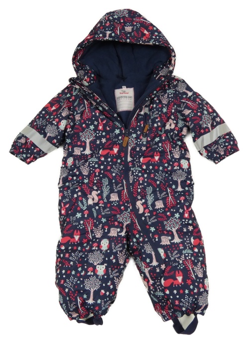 Tmavomodrá šusťáková zimní kombinéza se zvířaty a kapucí Topomini