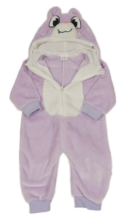 Levandulovo-bílá plyšová kombinéza s kapucí - zajíček