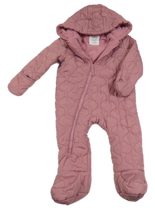 Starorůžová prošívaná šusťáková zimní kombinéza s kapucí F&F