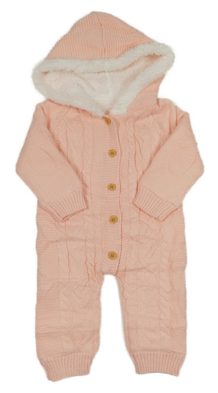 Lososová pletená zateplená kombinéza se vzorem a kapucí