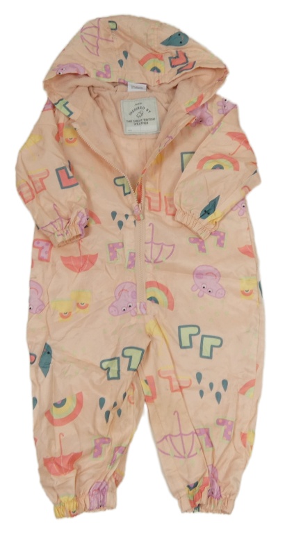 Broskvová šusťáková podzimní kombinéza s Peppa Pig a kapucí George