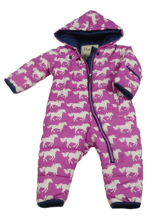Růžovofialová šusťáková zimní kombinéza s koňmi a kapucí Hatley