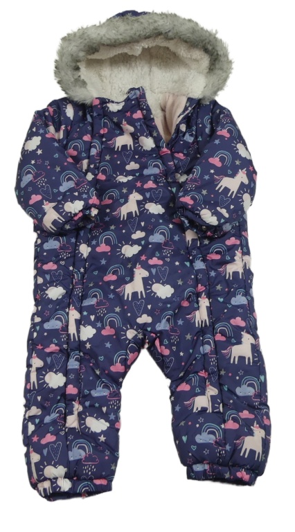Tmavomodrá šusťáková zimní kombinéza s jednorožci a kapucí F&F