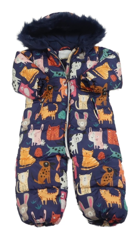 Tmavomodrá šusťáková zimní kombinéza se zvířátky a kapucí Next