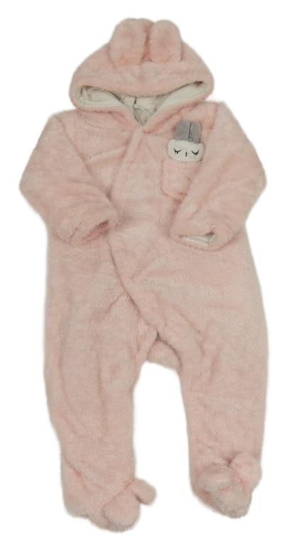 Světlerůžová plyšová zateplená kombinéza s králíkem a kapucí