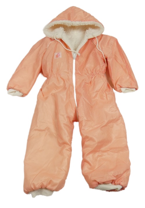 Lososovo-červená proužkatá zimní kombinéza s kapucí