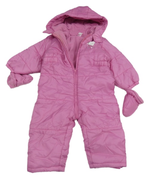 • Růžová prošívaná šusťáková zimní kombinéza s ptáčkem a kapucí + rukavice C&A