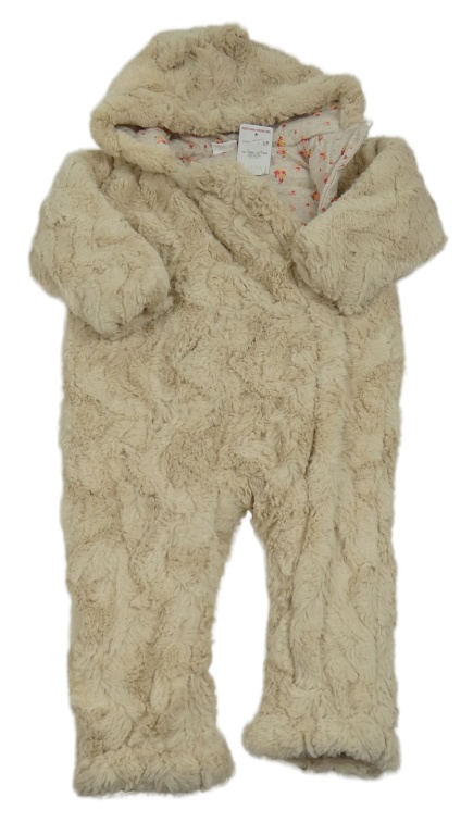 Nové- Béžová kožešinová zateplená kombinéza s kapucí F&F