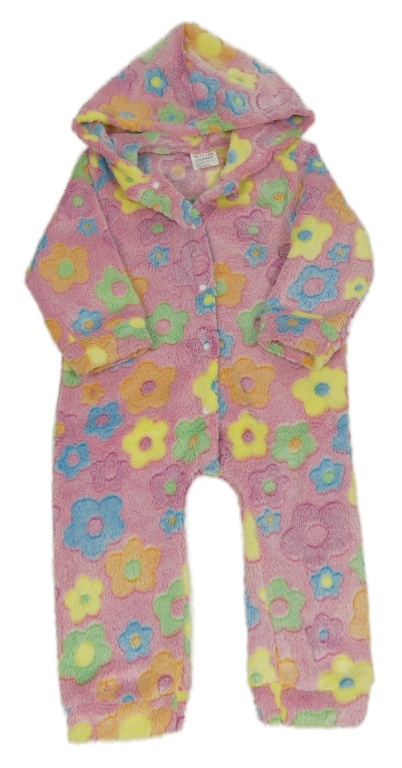 Růžová květovaná chlupatá kombinéza s kapucí
