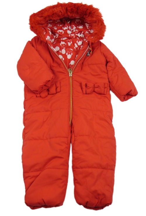 Červená šusťáková prošívaná zimní kombinéza s Minnií a kapucí George