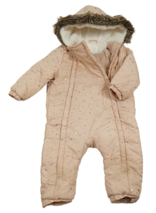Broskvová šusťáková zimní kombinéza s hvězdičkami a kapucí F&F
