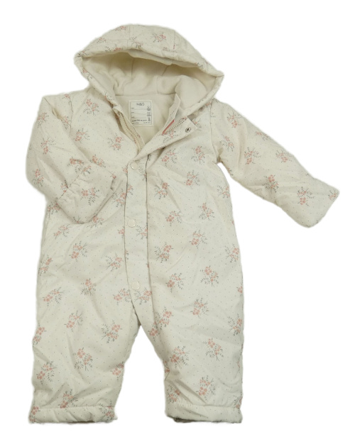 Nové - smetanová květovaná šusťáková zimní kombinéza s kapucí M&S