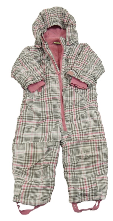 Hnědo-bílo-růžová kostkovaná šusťáková zimní kombinéza s kapucí Topomini