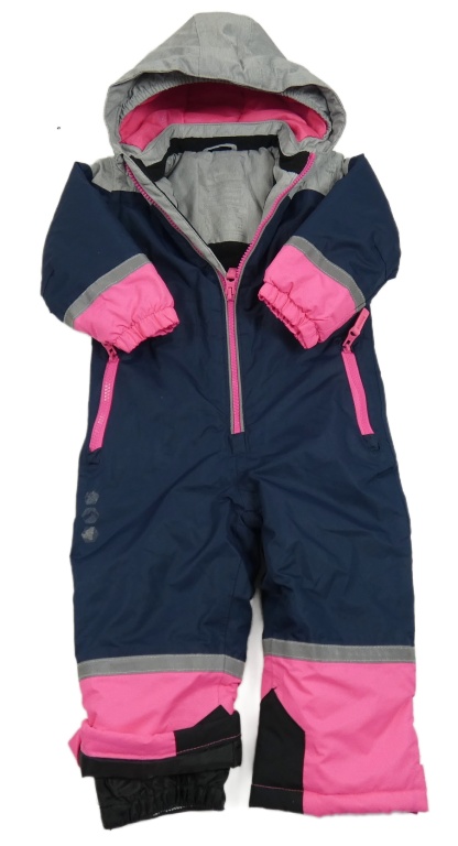Tmavomodro-šedo-růžová šusťáková zimní kombinéza s kapucí C&A