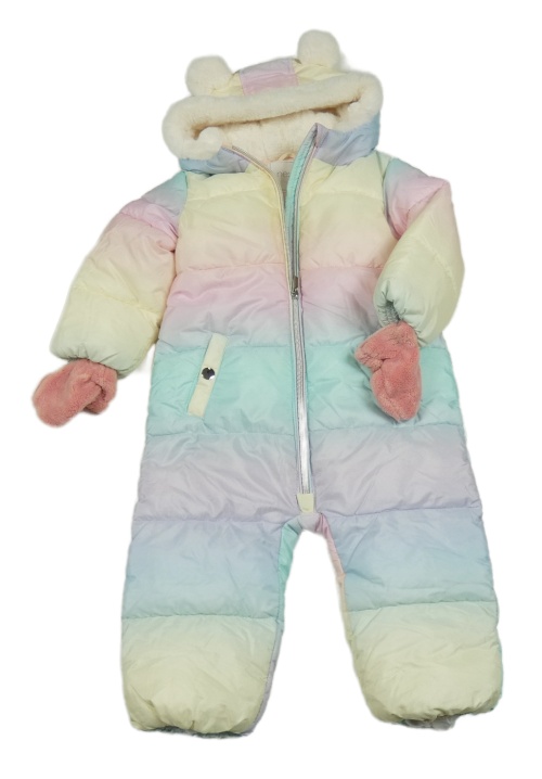 • Barevná pastelová šusťáková zimní kombinéza s kapucí s kožešinou + rukavice Next