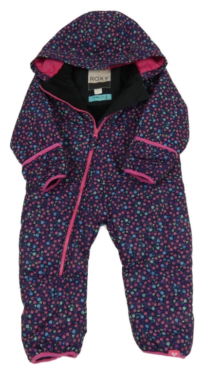 Tmavomodro-růžová květovaná šusťáková zimní kombinéza s kapucí roxy