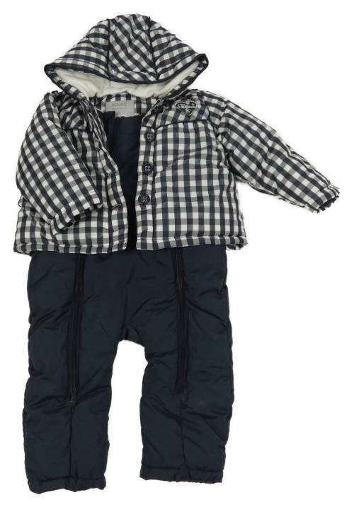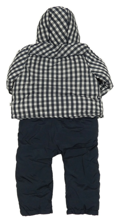 Tmavomodro-bílá kostkovaná šusťáková zimní kombinéza s kapucí Kanz