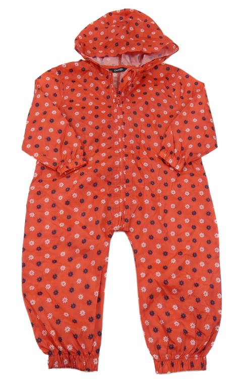 Jahodovo-bílo-tmavomodrá květovaná šusťáková jarní kombinéza s kapucí George