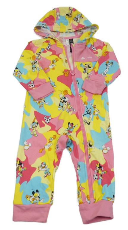 Barevná vzorovaná tepláková kombinéza s Minnií a kapucí Adidas