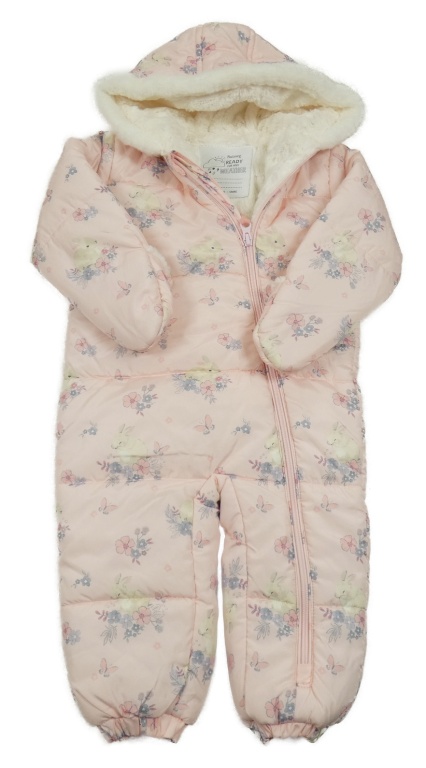 Světlerůžová šusťáková zimní kombinéza s králíky a kapucí Nutmeg
