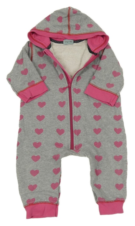 • Šedo-tmavorůžová melírovaná tepláková kombinéza se srdíčky a kapucí Lilly + Sid