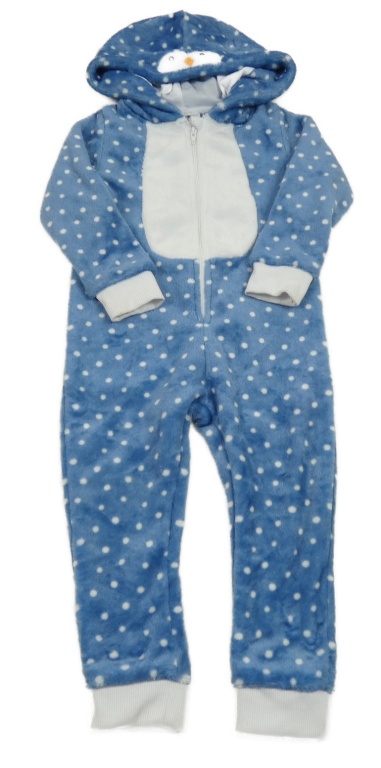 Modro-bílá puntíkatá chlupatá kombinéza s kapucí - tučňák Lily & Dan