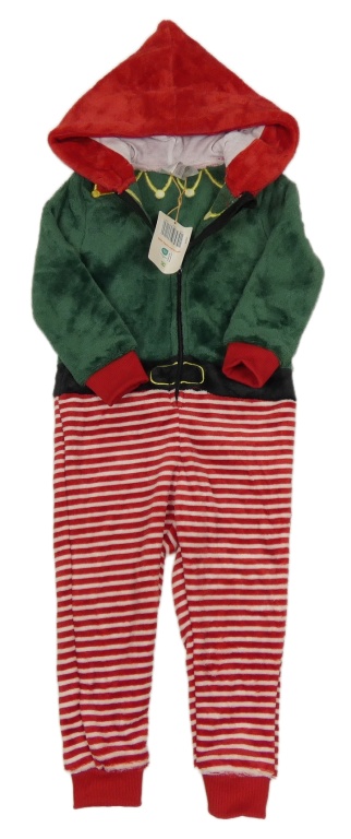 • Nová - tmavozeleno-červeno-bílá pruhovaná plyšová kombinéza s kapucí - elf Lily & Dan