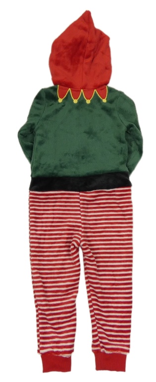 Nová - tmavozeleno-červeno-bílá pruhovaná plyšová kombinéza s kapucí - elf Lily & Dan