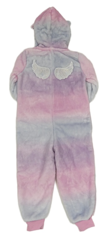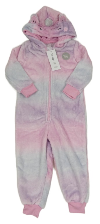 Nové - Růžovo-lila plyšová kombinéza s kapucí - jednorožec George