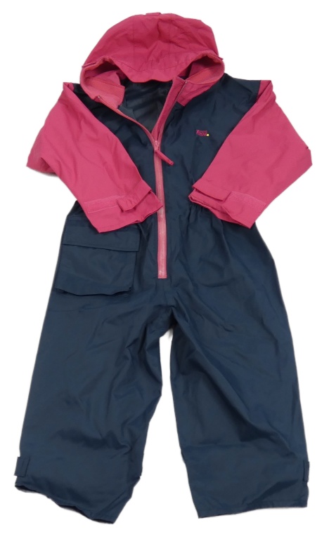 Malinovo-tmavomodrá šusťáková nepromokavá kombinéza s kapucí
