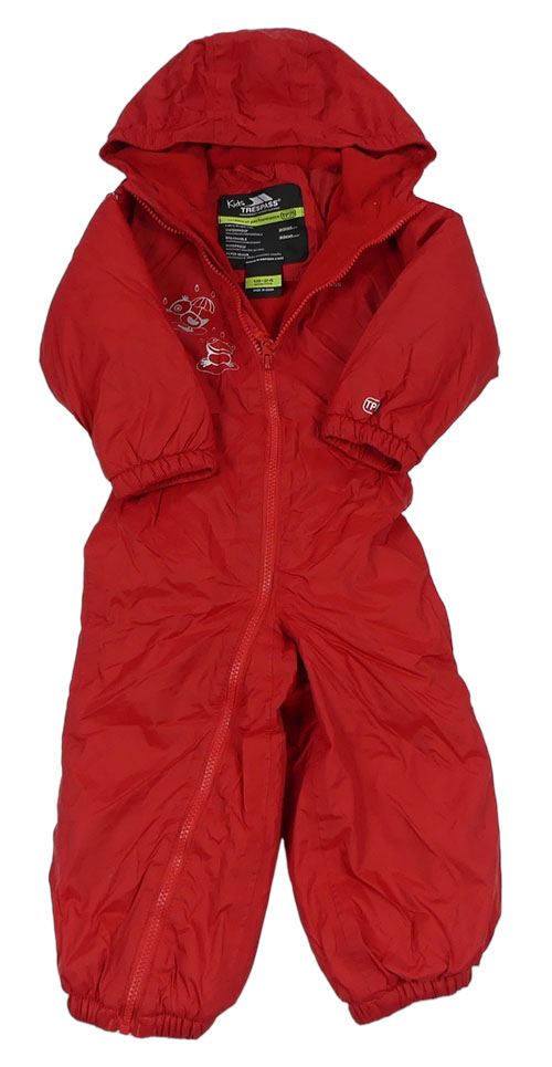 • Červená šusťáková funkční zimní kombinéza s obrázky a kapucí TRESPASS