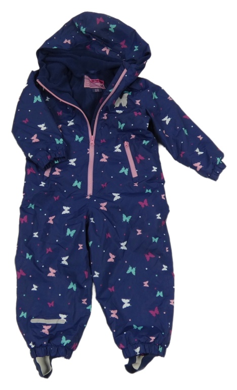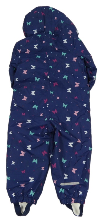 Tmavomodrá šusťáková podzimní kombinéza s motýly a kapucí Pocopiano