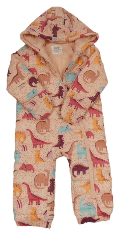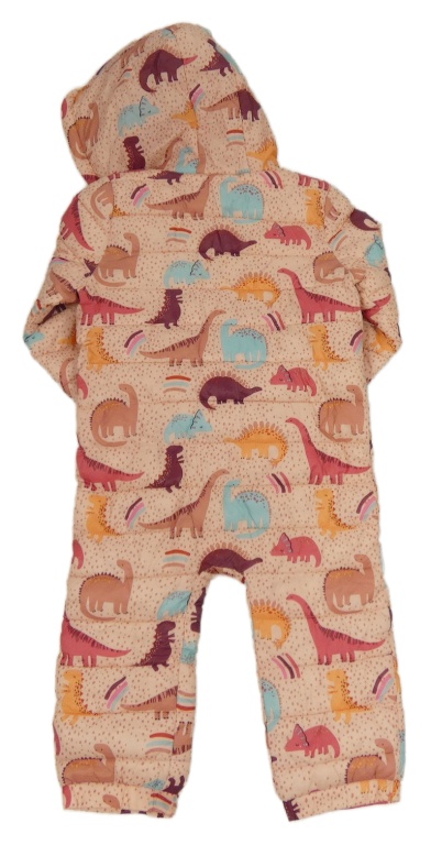 Světlerůžová puntíkatá šusťáková zimní kombinéza s dinosaury a kapucí F&F