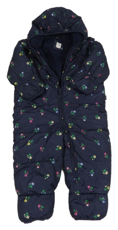 Tmavomodrá květovaná šusťáková zimní kombinéza s kapucí GAP