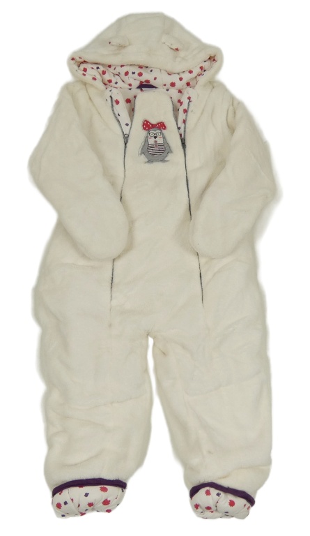 Bílá plyšová zateplená kombinéza s tučňákem a kapucí Papagino