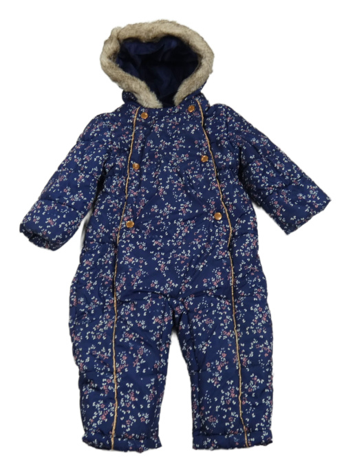 Tmavomodrá květovaná šusťáková zimní kombinéza s kapucí Mothercare