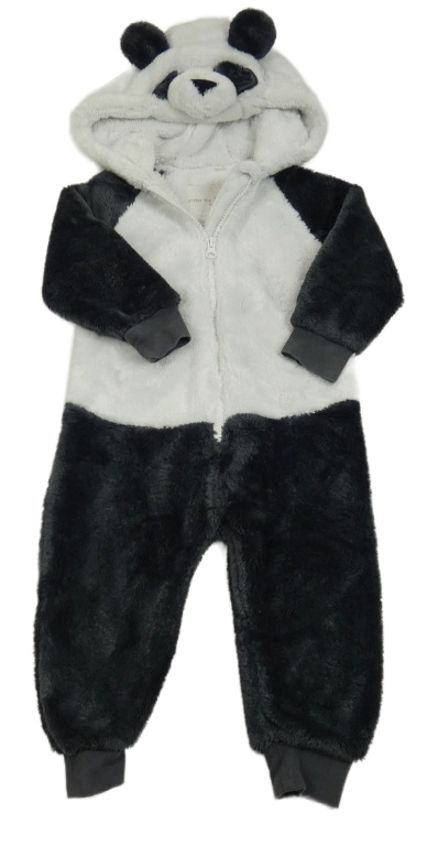 Tmavošedo-bílá chlupatá kombinéza s kapucí - panda Next