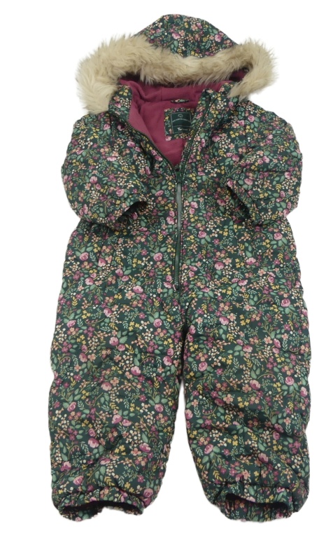 Zelená květovaná šusťáková zimní kombinéza s kapucí s kožešinou Tu