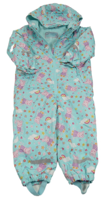 Světlemodrá květovaná šusťáková zateplená kombinéza s Peppou a kapucí