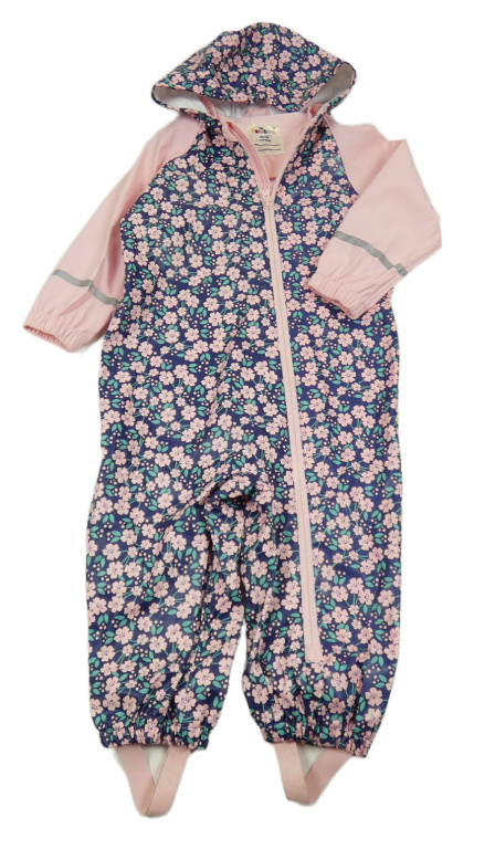 Tmavomodro-růžová květovaná voděodolná kombinéza s kapucí Kuniboo