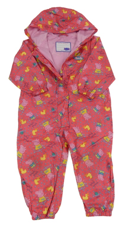 Růžová puntíkatá šusťáková podšitá kombinéza s Peppa pig a kapucí Nutmeg